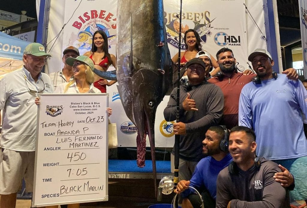 The leaderboard at Bisbee’s Black and Blue tournament is heating up! At press time, a whopping 450-pound marlin caught by the “Hooray” boat team is leading the pack on day one. This team of anglers—hailing from right here in Cabo, Costa Rica, and the U.S.—reeled in the monster marlin earlier today, scooping up a jaw-dropping $1.5 million of the estimated $7 million total purse for the tournament.