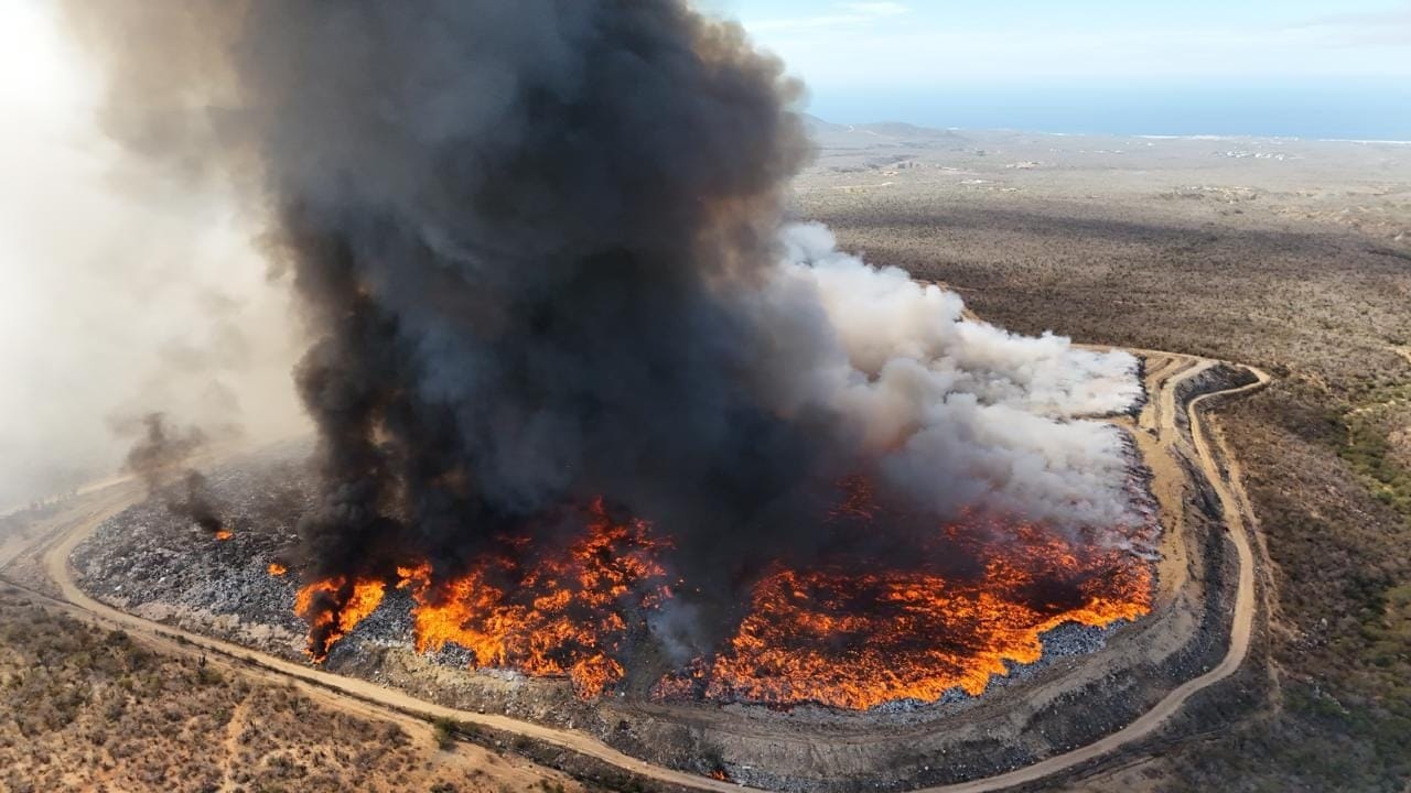 The fire at the Cabo San Lucas city dump continues to challenge local firefighters, but progress is being made. Starting yesterday, thick smoke from the blaze reached the city due to shifting weather conditions, prompting officials to urge residents to take precautions. Citizens were advised to close doors and windows and wear face masks if necessary to minimize health risks.