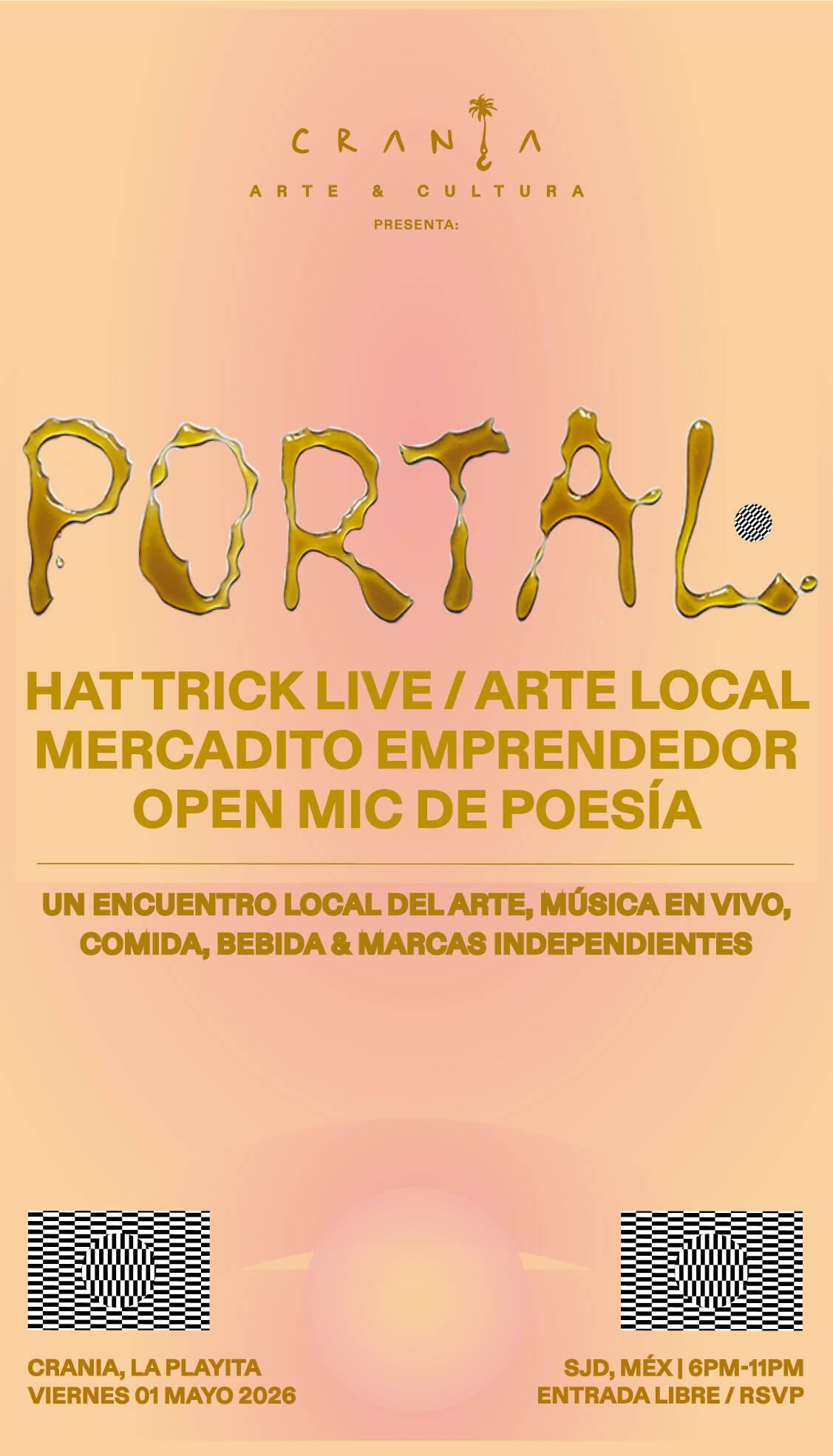 May 1 6:00 pm - 11:00 pm Portal at CRANIA 2026 CRANIA Air Disco, Global Makerspace & Artist Residency Marina Puerto, Poblado La Playa, San José del Cabo, B.C.S., San jose del Cabo Event Details Get Directions