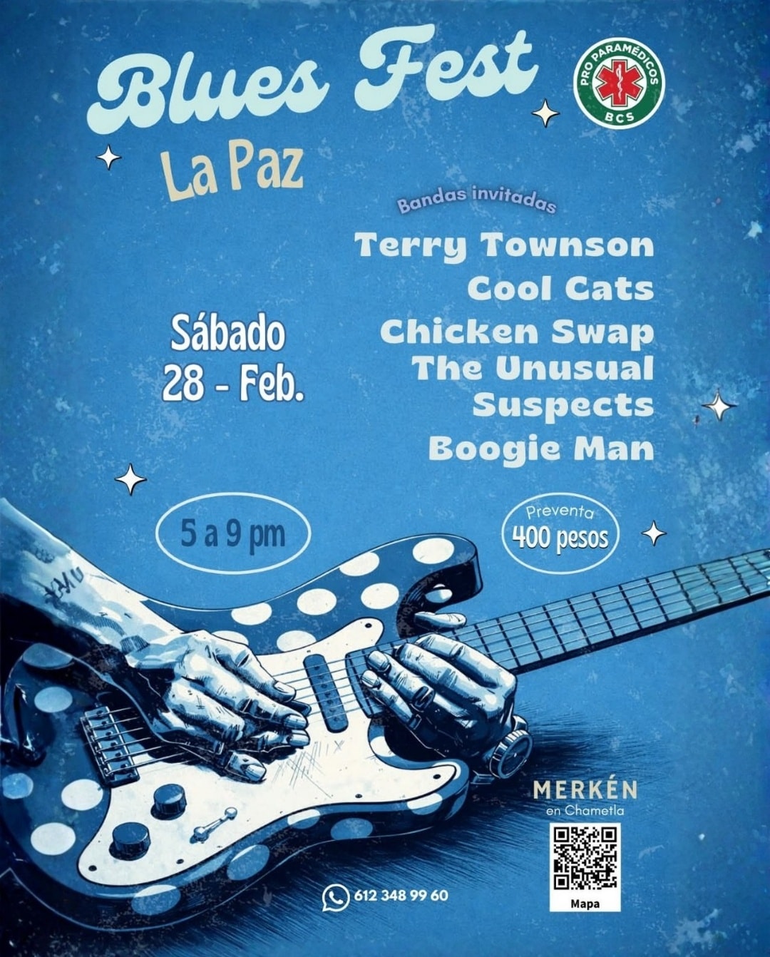 Blues Fest La Paz is a live blues music festival taking place on Saturday, February 28, from 5:00 to 9:00 PM, at Merkén.
