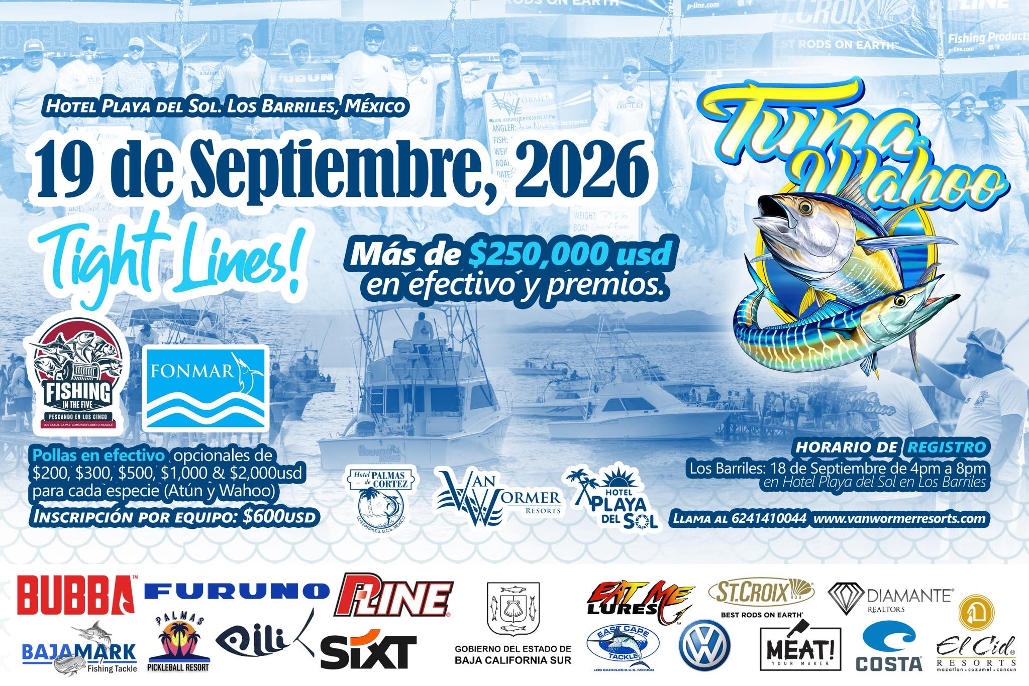 Mark your calendar for Saturday, September 19, 2026 the Tuna & Wahoo Shoot Out returns to Los Barriles, delivering one of the most adrenaline-charged fishing days of the Baja fall season! This fast-paced, one-day tournament targets the high-speed thrill of yellowfin tuna and wahoo in the rich offshore waters of the Sea of Cortez, where these pelagic predators are known to hit hard, run fast, and fight like champions.